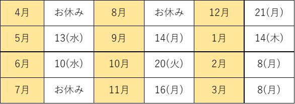 ※4月は新入園児対応のため、7・8月は危険な暑さが予想されるため園庭開放は中止します。