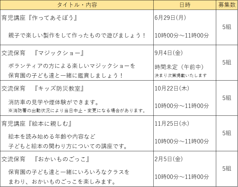 園庭の開放(10時00分~11時00分)(各日定員3組)※雨天中止