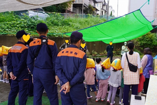 子ども達は、園庭に避難した後、消防士さんからお話を聞きました。
