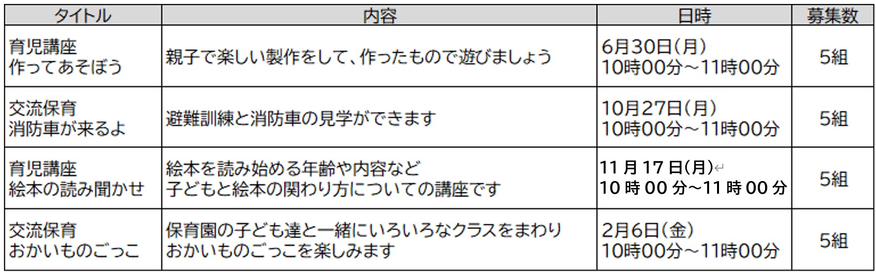 ※4月は新入園児対応のため、7・8月は危険な暑さが予想されるため園庭開放は中止します。