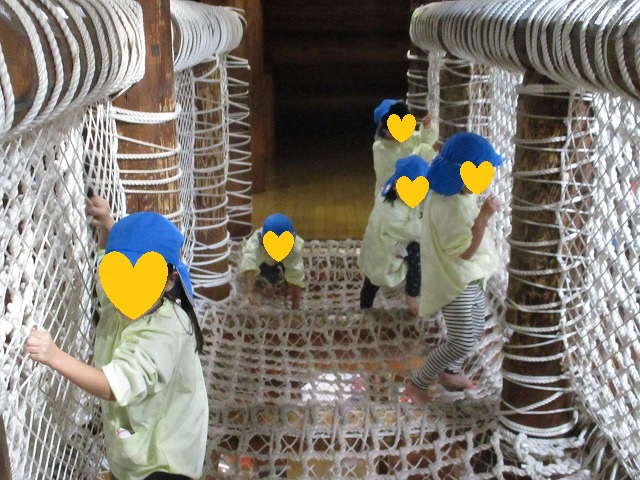 縄の橋は渡るのが難しく、ちょっと怖そうでした。